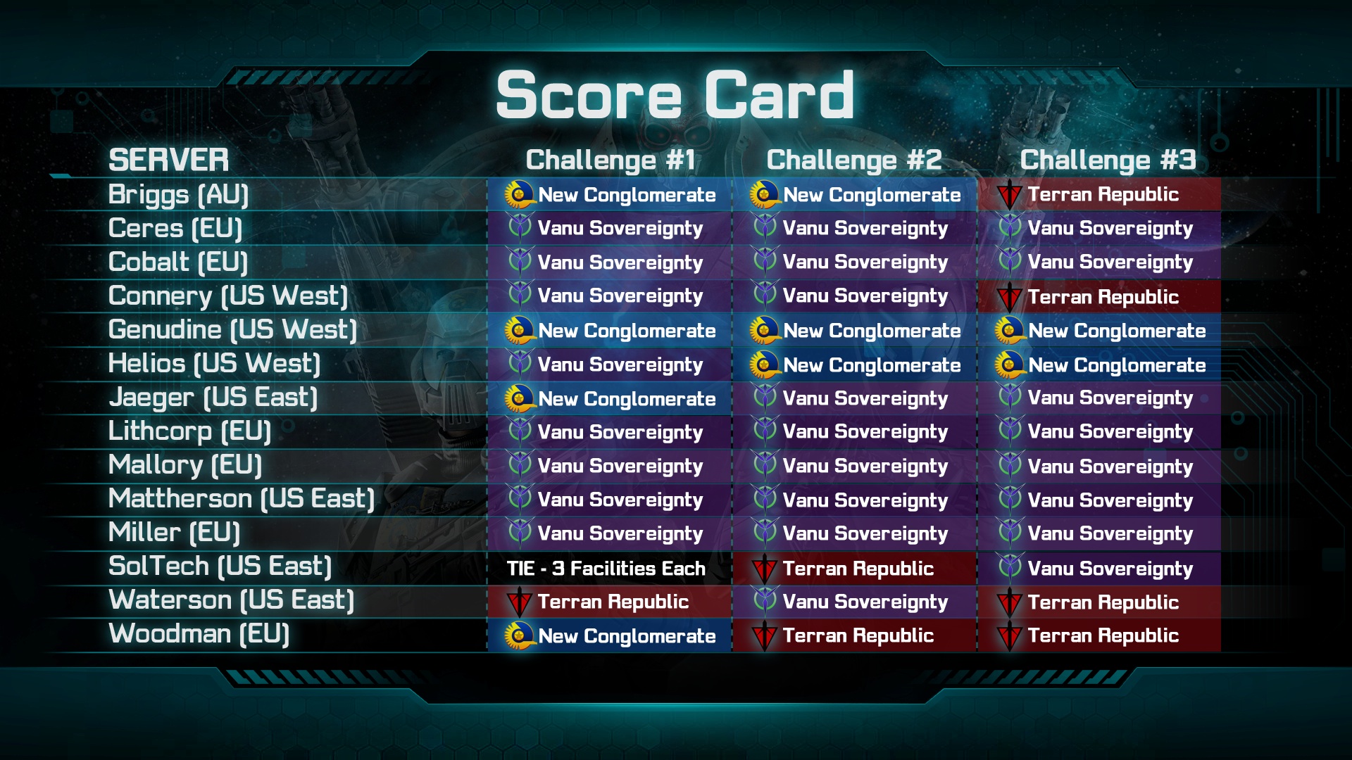 The Ultimate Empire Showdown has ended. We'd first like to extend a huge THANK YOU to all of our fans, partners and friends! The PlanetSide 2 team was humbled by your support and commitment to your Empires. Alas, after every battle of such epic proportions, a victor must emerge from the battlefield!