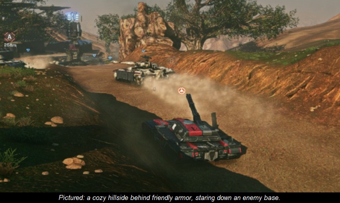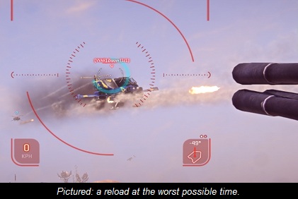 Let me begin by dispelling the myth that Skyguards benefit from high altitude. You should not stand on top of a hill when searching for targets. Let me repeat that: you should not stand on top of a bloody hill when searching for targets. The only acceptable time for standing on a hill is when posing heroically. Standing on a high peak will only make you easy to spot, easy to get around, and easy to kill. Generally speaking, a Skyguard will not be able to eliminate a target that's aware of its location. A quick tilt to the right followed by a thrust of the afterburners is all it will take your target to evade your grasp. But don't worry, it will be back – probably from behind, with a pod of rockets and plenty of bloodlust.