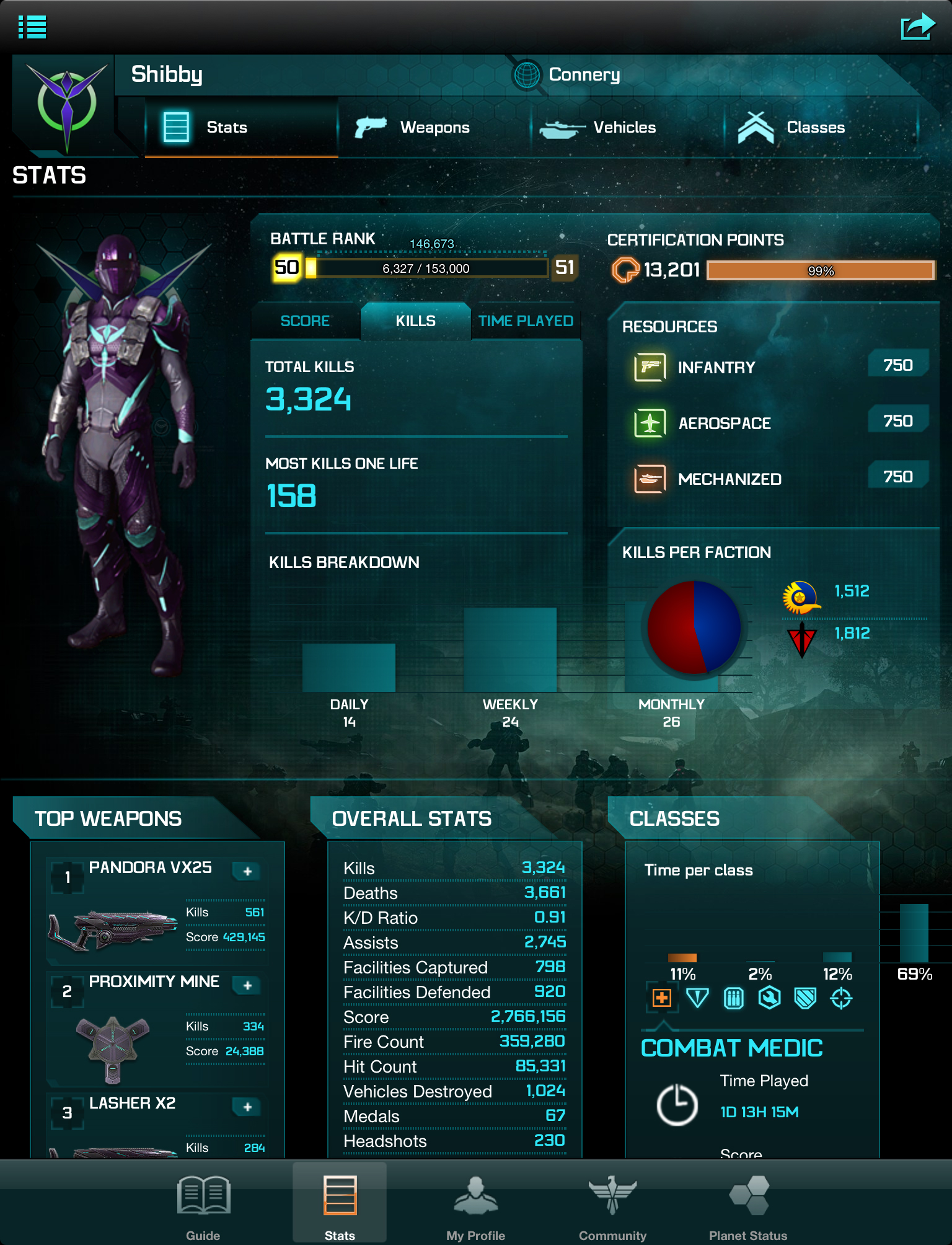 The PlanetSide 2 app is now available for download! You’ve heard us talk about it and might have even seen it on a recent episode of Friday Night Ops. Now, you can try it yourself. Heading to the player’s site to check stats and information can take your attention away from the fight, so for those occasions where you can’t even spare a moment in the heat of battle - or when you’re too far away from the battle to see - the PlanetSide 2 app has what you need.