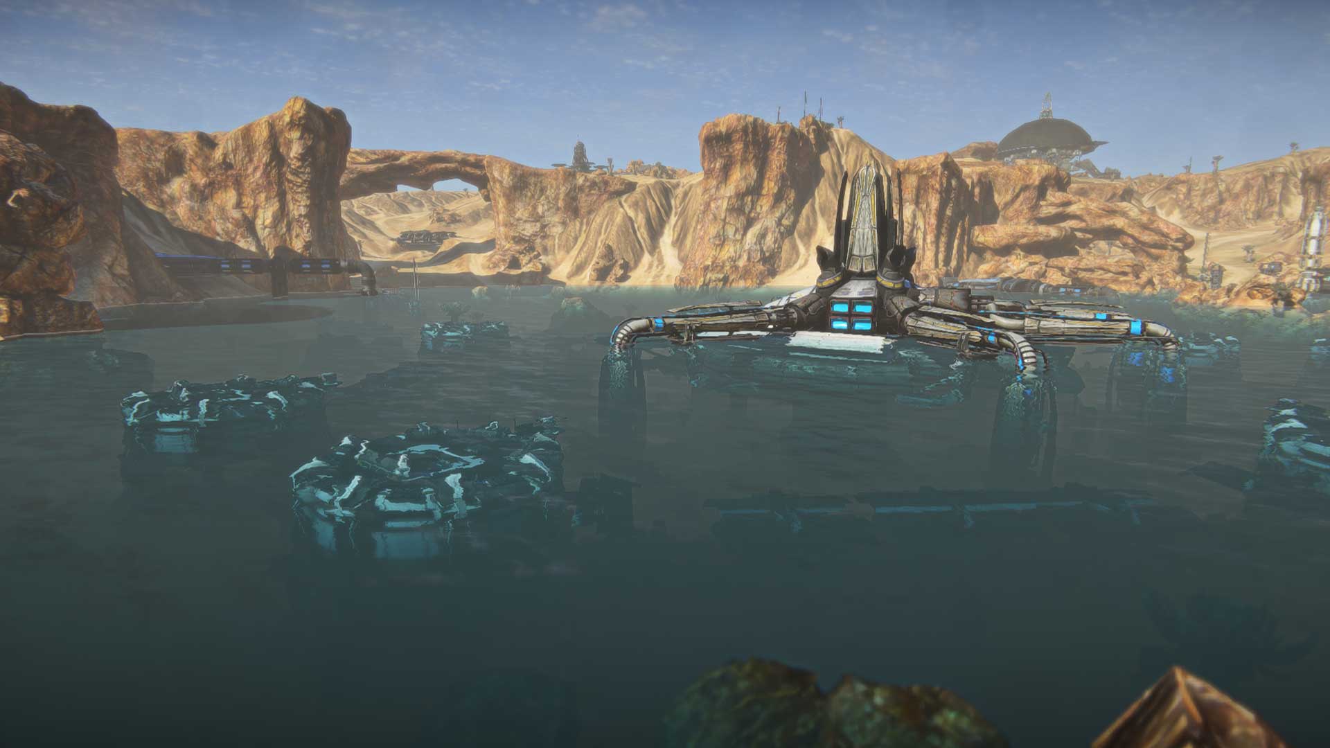 The northern half of Indar is a dry oceanbed, with water levels having receded in years prior. For a limited time on the Public Test Server, you'll be able to see what Indar may have looked like before the water dried up!